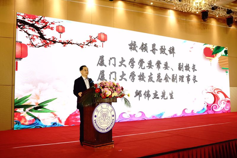 邱伟杰表达了母校及校友总会对在皖厦大校友的诚挚问候。他说,安徽省文化底蕴深厚,一代代安徽人用钻研的精神,爱国的情怀书写了精彩华章。在皖厦大校友继承了“敢为人先,奉献自强”的精神,为安徽经济发展和社会进步做出了巨大贡献,也为母校争得了许多荣誉。厦大合肥校友会是在皖厦大人的坚强后盾与精神家园,长期以来,合肥校友会不断加强校友情谊,提升服务水平,搭建起了校友交流沟通的平台。以陆勤毅会长为代表的校友会骨干付出了巨大努力,新一届的校友会骨干也将秉承优秀传统,取得更优异的成绩。他表示,母校百年校庆即将来临,筹备工作已步入正轨,为把校庆活动办出特色,办得更有意义,需要广大校友和各地校友会的支持与帮助。厦大的百年发展史,就是一部校友感恩母校、回馈母校,支持母校发展的历史。他号召各位校友传承母校“四种精神”,努力进取,奋勇拼搏,在各自的岗位中发光发热,在此基础上积极参与母校百年校庆各项工作中来。