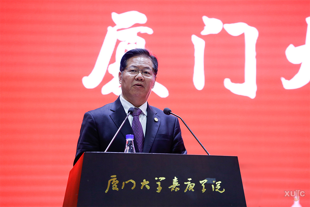 邱伟杰代表厦门大学向嘉庚学院表示祝贺,向关心和支持嘉庚学院建设发展的各界人士表示感谢。他指出,16年来,作为母体学校的厦门大学始终把嘉庚学院作为厦门大学教育事业的重要组成部分,全方位支持嘉庚学院的办学,今后厦门大学将一如既往地支持嘉庚学院的建设和发展,以更加积极务实的行动,将嘉庚学院的办学推向新的高度。他表示,嘉庚学院校友会是厦门大学全球范围内第95个校友会,它的成立标志着嘉庚学院校友工作进入一个规范化、组织化、制度化运营的新阶段,也意味着“以学生为中心”的办学理念被赋予了新的内涵,“校友会的成立,为嘉庚学院‘终身教育’‘终身服务’以及‘终身关怀’的工作理念提供了一个新的载体和有力抓手;校友会的成立,也为每位校友打造了一个永恒的精神‘嘉园’。”他希望厦门大学嘉庚学院校友会成立后,能够主动服务、广泛联络,为海内外校友提供一流的服务,尽母校所能帮助校友们茁壮成长。他也希望,嘉庚学院校友们能在厦门大学百年发展中发挥积极作用,为社会、国家做出更多的贡献;能继续关心母校的建设发展,多角度、多方位地为嘉庚学院各项事业献计献策、添砖加瓦。