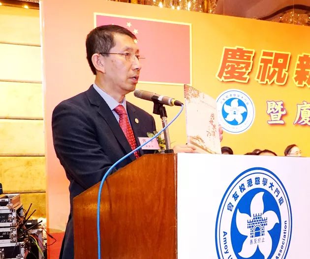 朱崇实代表学校和校友总会致贺辞,他表示,旅港校友会自1949年成立以来,始终坚持“爱国爱港爱校”的办会宗旨,大力弘扬“自强不息,止于至善”的校训精神,走过了不平凡的光辉灿烂的七十年。他指出,旅港校友会是一个美好“大”家庭,温馨“大”港湾,广泛联络各行各业各年龄段校友,建立健全校友工作科学运行机制,在不断提升校友会的凝聚力与向心力上取得了实实在在的成绩。旅港校友会是一条把厦大校友与母校紧紧联系在一起的坚实纽带,无论是在学校教学科研条件建设中,还是在学校遭遇台风洪涝等自然灾害的赈灾活动中,旅港校友会始终关心支持母校的建设与发展。旅港校友会是一座帮助厦大校友融入香港、建设香港、热爱香港的钢铁桥梁,旅港校友为香港的进步繁荣做出了宝贵的奉献和付出。旅港校友会始终是团结厦大校友爱港爱国的坚强堡垒,校友会从成立的第一天就与祖国同呼吸、共命运,为祖国的建设与发展做出宝贵贡献。他期望,旅港校友会以建会70周年为契机,紧密团结旅港的来自五湖四海的南强学子,更好地凝聚校友智慧,汇集校友资源,为母校的建设发展、为香港的繁荣稳定、为祖国的改革开放做出更大的贡献。