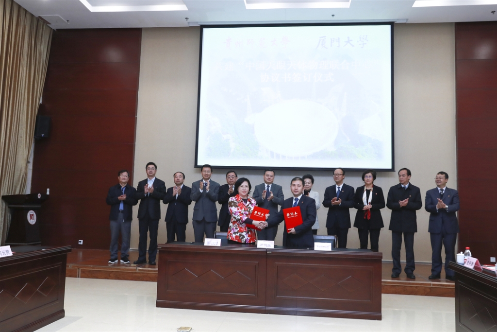 会上,邓朝晖与贵州师范大学副校长乙引分别代表两校签订共建“天体物理联合中心”协议书。