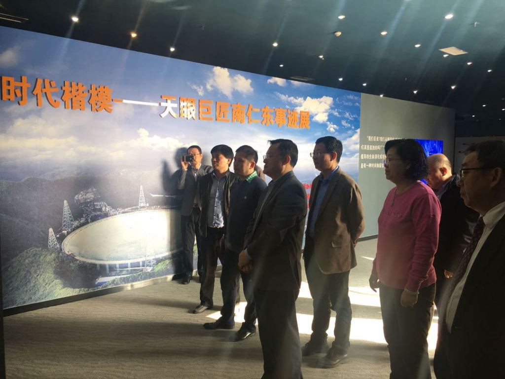 8日,张荣一行前往平塘县实地调研中国科学院国家天文台FAST工程、参观南仁东先进事迹馆,商讨“联合天体物理实验室”建设相关事宜。FAST总工程师、研究员姜鹏介绍FAST建设情况并全程陪同参观。