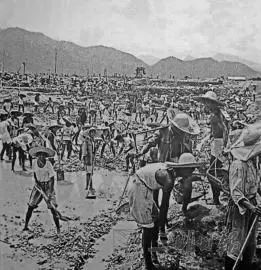 1958年,厦门大学青年学子支援三明工业基地建设。图为万人大会战工地场景