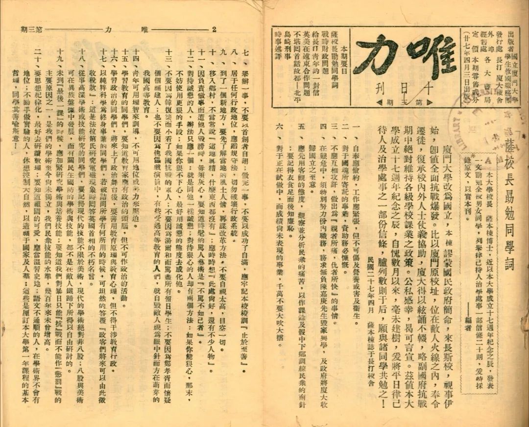 厦门大学在长汀期间出版的刊物《唯力》
