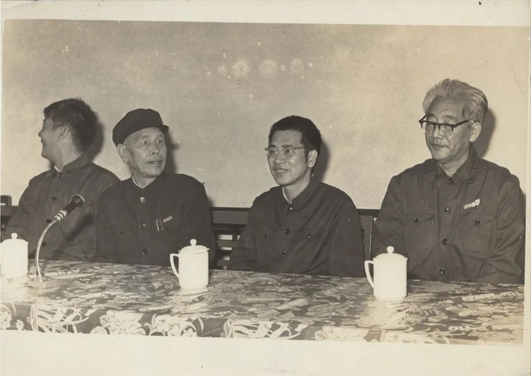 1981年,陈景润(右二)回母校厦门大学参加60周年校庆与李文清(右一)等老师们合影