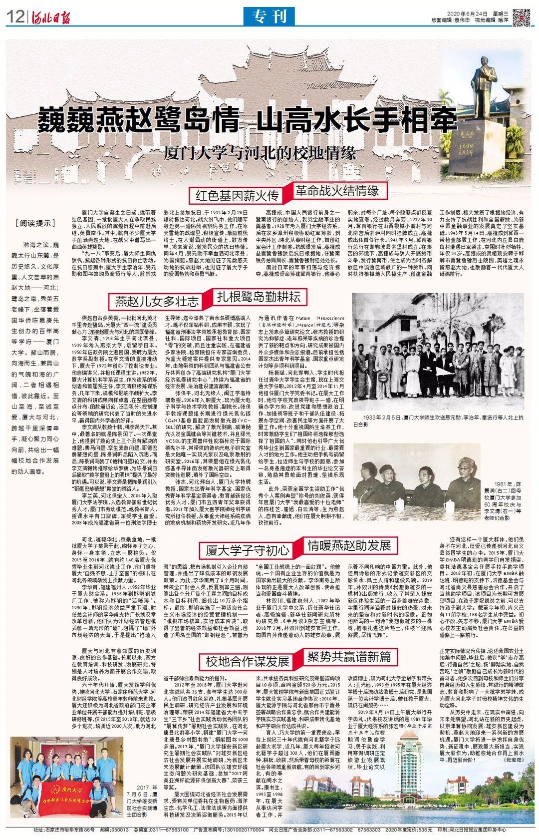 燕赵自古多英豪,一批批河北英才千里奔赴鹭岛,为厦大“双一流”建设贡献心力,连接起厦大与河北的深厚情缘。