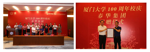 7月3日下午,厦门春华集团有限公司在既往襄助530万元基础上,再次捐赠厦门大学600万元,献礼百年华诞,支持教育事业。捐赠仪式在学校科学艺术中心4号会议室举行。厦门春华集团有限公司董事长林春生,执行董事、副总裁朱剑鸿,厦门大学党委书记、教育发展基金会理事长张彦,副校长、教育发展基金会副理事长叶世满,党委常委、宣传部部长徐进功等出席了捐赠仪式。仪式由教育发展基金会秘书长曾云声主持。
