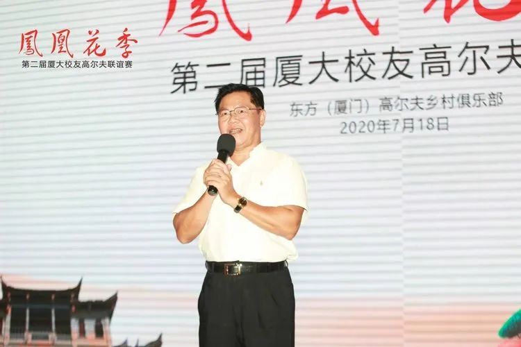 朱崇实一身简单的白衬衫黑西裤黑皮鞋,精神抖擞地上台致辞,讲述了厦大与高尔夫的不解之缘,并对赛事的成功举办给予高度的肯定,并对喜获一杆进洞的苏权校友给予祝贺。