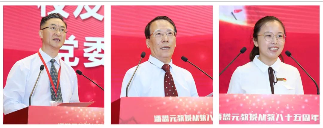 校友代表刘华东,教师代表邬大光,学生代表郑雅倩相继发言,崇敬师长,感念师恩,感恩母校。