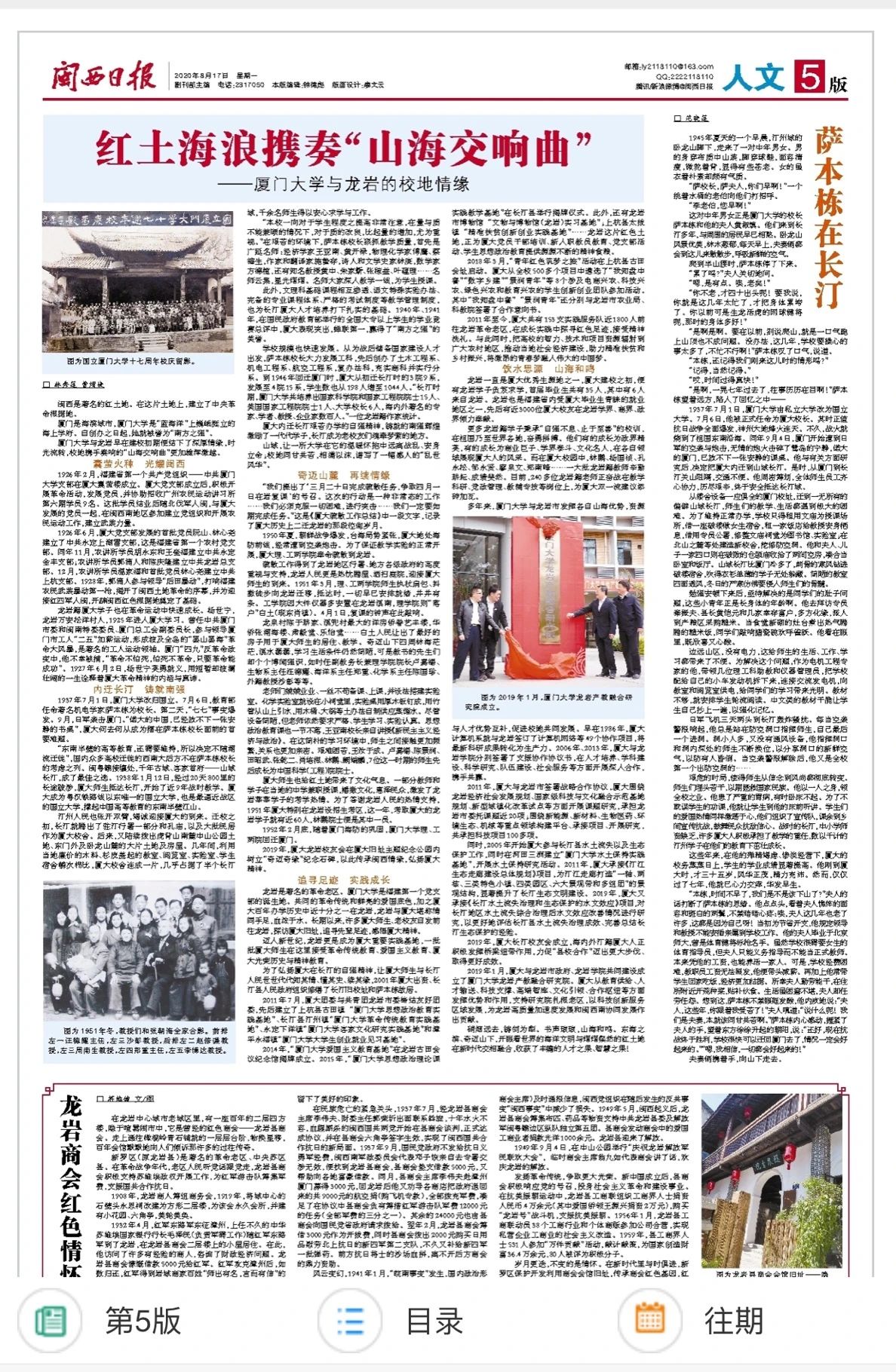 2019年,厦大长汀校友会成立,海内外汀籍厦大人正积极发挥桥梁纽带作用,力促“县校合作”迈出更大步伐、取得更好成效。