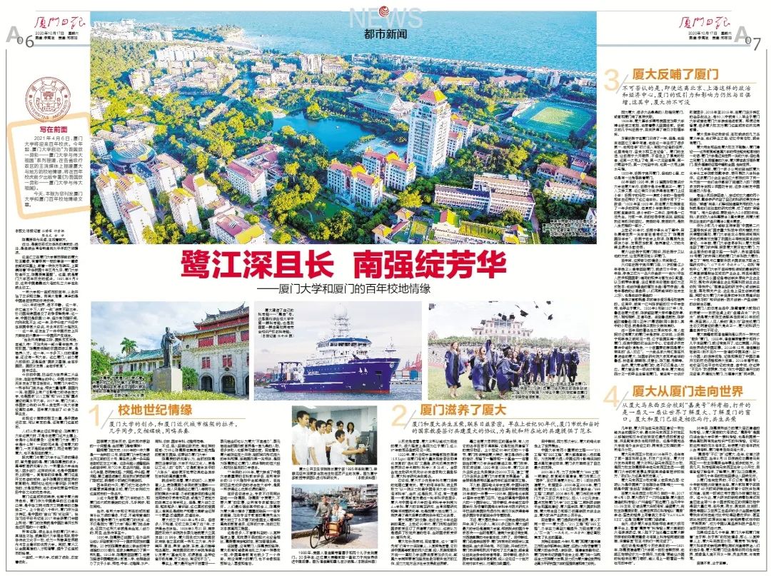 如果说过去几十年里,厦门大学和厦门有着“生于斯、长于斯”的校地情缘,那么,从某种意义上,厦大马来西亚分校、“嘉庚”号科考船、厦大科学家的新冠病毒检测试剂盒等带给人们的启示是,厦大和厦门已经是相依而行走向世界,就像鱼儿离不开水一样,共生共荣,与有荣焉。