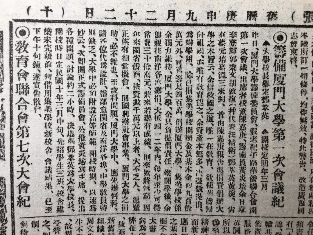 1920年11月2日,《申报》报道厦门大学筹备委员会第一次会议