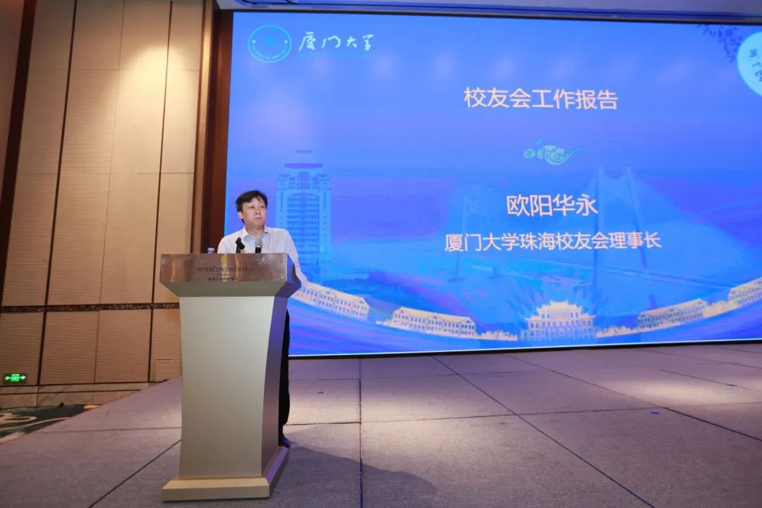 第二届校友会理事长欧阳华永做了工作总结。他感谢母校一直以来对珠海校友会以及广大珠海校友的关心与指导。近年来,珠海校友会始终秉承母校“自强不息 止于至善”的校训,加强与母校以及校友总会的联系,通过开展丰富多彩的活动,紧密团结了广大在珠校友,积极发动校友支持母校“双一流”建设,助力母校百年校庆筹备,并发挥桥梁和窗口的作用,加强与各地校友会、珠海本地社会团体的联系,实现合作共赢,共谋发展,有力提升了校友会工作实效。