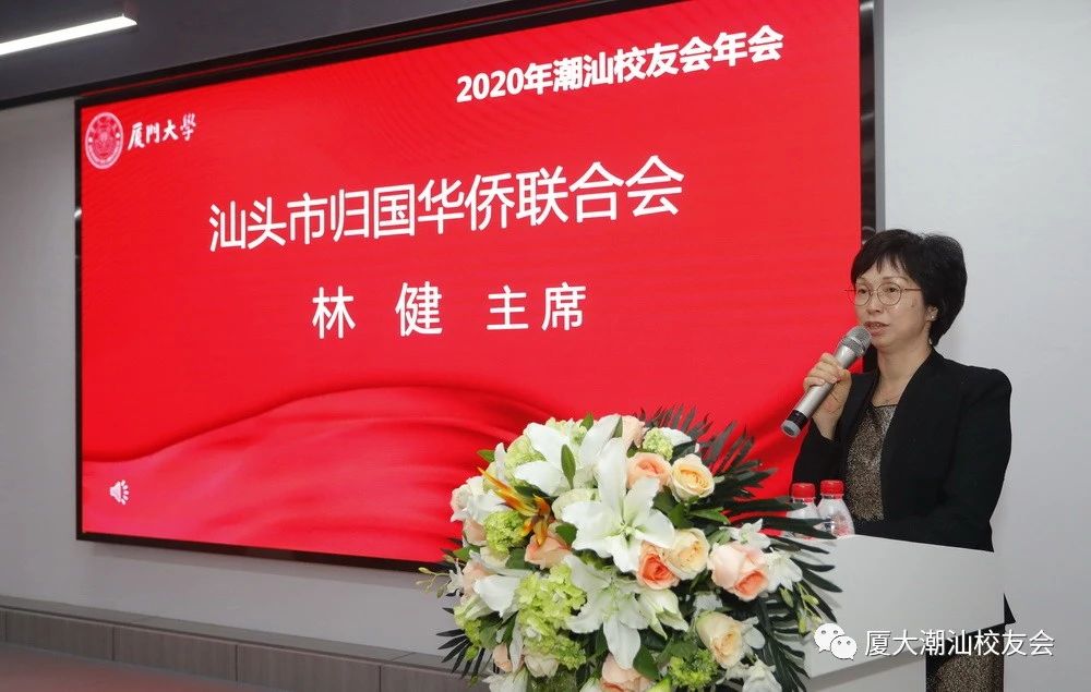 林健在致辞中表示,汕头市侨联因“侨”与厦大结缘,潮汕校友会在汕头地区已经走过了32个春秋,多年来,厦门大学为整个粤东地区的经济发展源源不断地输送各类人才,极大地推动了地方社会经济的发展,侨联作为联系政府与侨界的纽带,有责任服务好与侨结缘的各类社会团体,包括厦大的校友会。习近平总书记在改革开放四十周年之际来到潮州和汕头考察,侨联有责任和义务去思考,在新的历史时期,汕头如何把握机遇,凝聚侨的力量,促进经济社会的发展,衷心希望厦大潮汕校友会在参与潮汕经济发展中发挥更大的作用。