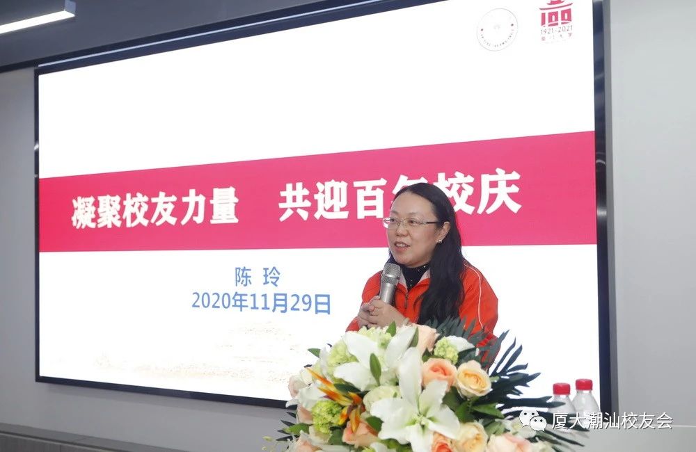 11月29日,“迎百年校庆·促创新发展”2020年厦门大学潮汕校友会年会在广东龙湖科技股份有限公司隆重举行。厦门大学校友总会荣誉理事、原常务副校长潘世墨,汕头市归国华侨联合会主席林健,校友、汕头市人大常委会副主任、汕头大学教授徐宗玲,厦门大学校友总会副秘书长陈玲,厦门大学近海海洋环境科学国家重点实验室副主任林孟妹,湖南校友会常务副会长、《蓝海百年》制片人李河典,《蓝海百年》导演王小地,广东、佛山、深圳等多地校友会代表,以及来自汕潮揭三市的校友百余人参加了活动。集美大学校友会汕头分会会长李立先、副会长兼秘书长陈辉等到场祝贺。