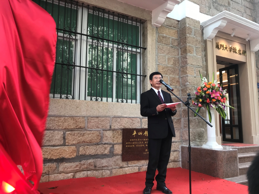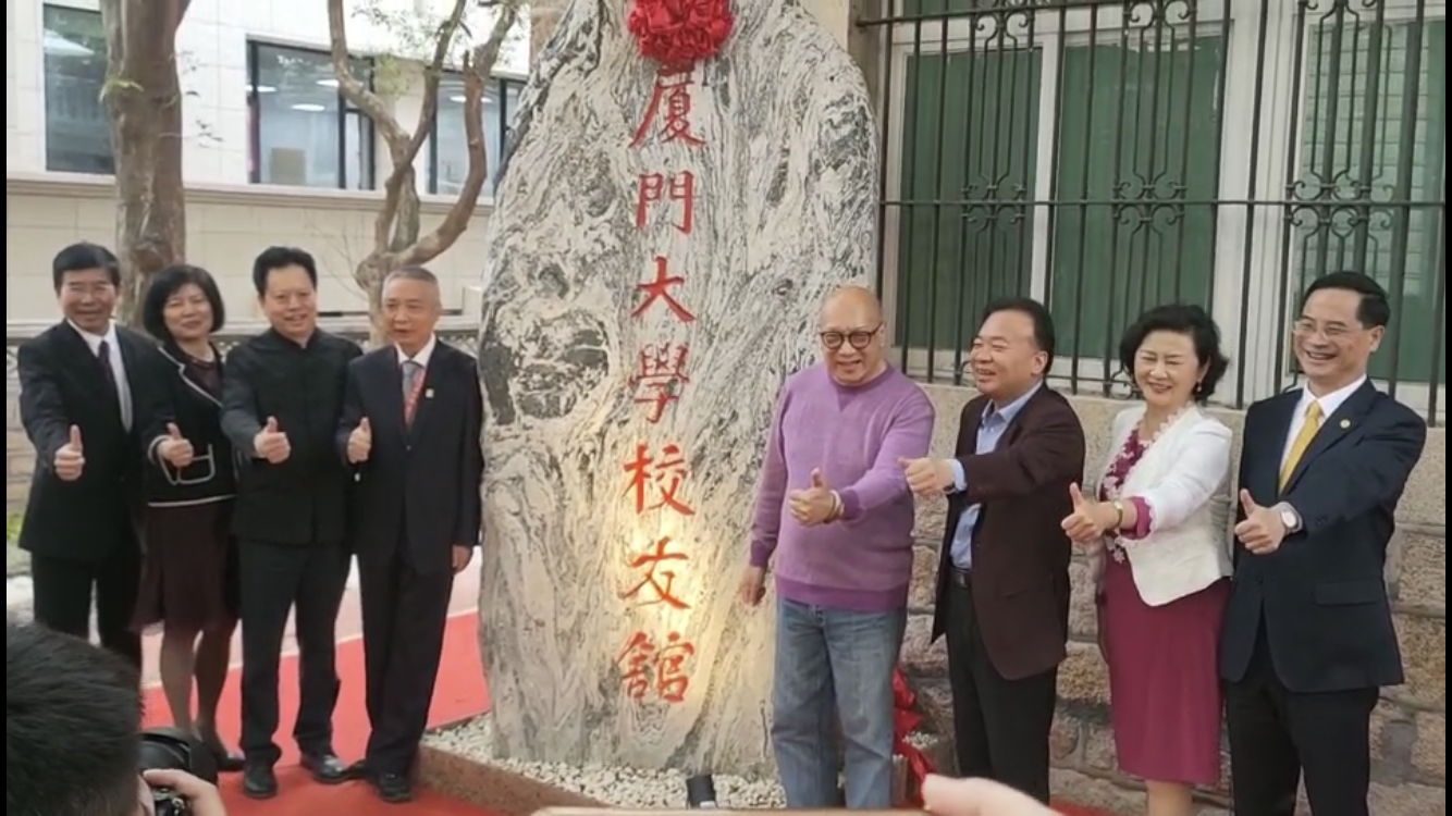 4月7日下午,厦门大学校友馆揭牌开馆活动在思明校区大南6号楼举行。陈嘉庚先生后裔陈立人,校党委书记张彦,副校长、校友总会副理事长邱伟杰,校友总会副理事长詹心丽,校友馆主要捐资人、1978级中文系校友、福建华闽进出口有限公司董事长刘平山,福建省企业与企业家联合会会长刘捷明,福州校友会原会长叶文振、副会长林冰共同为校友馆揭牌。