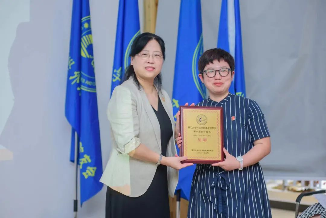 会上,赖虹凯还代表母校向孙小荔、于树军校友颁发了百年校庆捐赠证书。