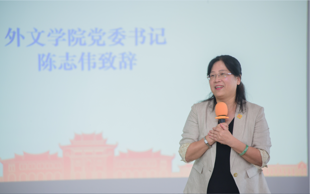 陈志伟向重庆地区外文学子转达了母院衷心的问候。她表示,希望在冯多俊会长等热心院友的带领下,重庆院友会可以凝心聚力,为重庆地区校友搭建平台,增进合作交流,成为校友和学院联系的桥梁、合作的舞台、感情的纽带,成为大家永远的温馨港湾。