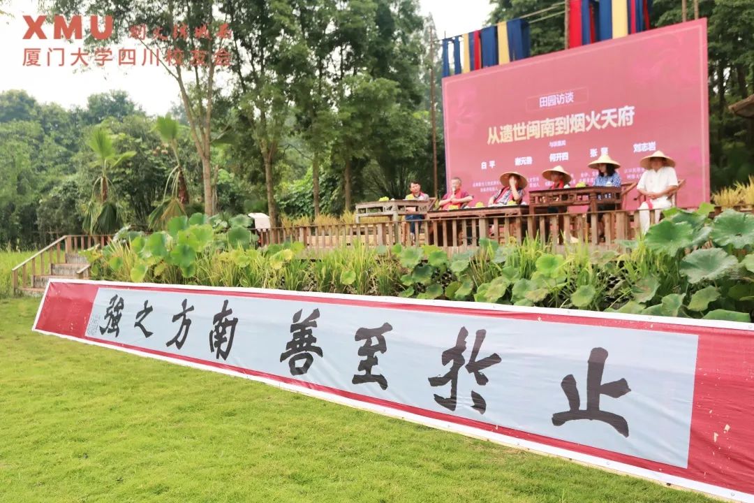 “从遗世闽南到烟火天府”,在校友文化访谈环节,四川省政府文史馆馆员、“三圣花乡”策划人谢元鲁,四川省作协副主席、《厦门大学赋》作者何开四,成都最佳文创旅游目的地青城湾创始人白平,金沙宝墩遗址发掘人、成都非遗文化保护发扬人张擎,江口沉银遗址发掘领队、网络大V“考古君”刘志岩畅聊了母校所在的闽南与四川的文化共通性,他们都具有开拓创新精神,他们开放、融合却又坚持自己的文化品格,让在场校友深深震撼于两地文化的精深与博大。