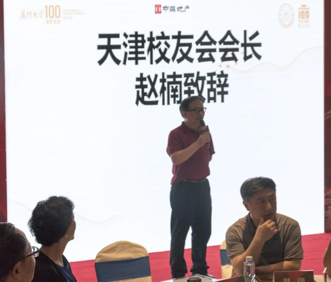 天津校友会会长赵楠致辞,回顾了天津校友会庆祝母校百年华诞系列活动,热烈欢迎2020届、2021届等新校友的加入,宣布了理事会关于接纳厦门大学嘉庚学院天津校友会为厦门大学天津校友会分会,以及增补理事等有关事项,并对校友会今后发展进行了展望。