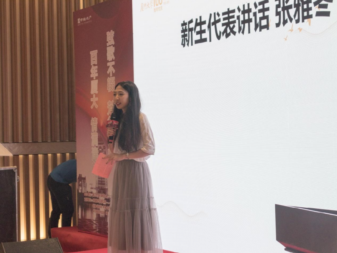 张雅冬代表新校友表达了心声。她表示新来到天津的厦大人们将扎根海河,以“自强不息 止于至善”的精神努力奋斗。