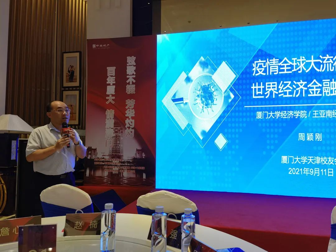 会议伊始,周颖刚带来了主题为《疫情全球大流行与世界经济金融格局》的学讲座,通过疫情大流行的“战局”、世界经济增长的“困局”、全球金融市场的“乱局”、经济金融全球化的“危局”、数字经济全球化的“变局”五个部分的内容,让校友们对后疫情时代的世界格局有了更清晰的了解。