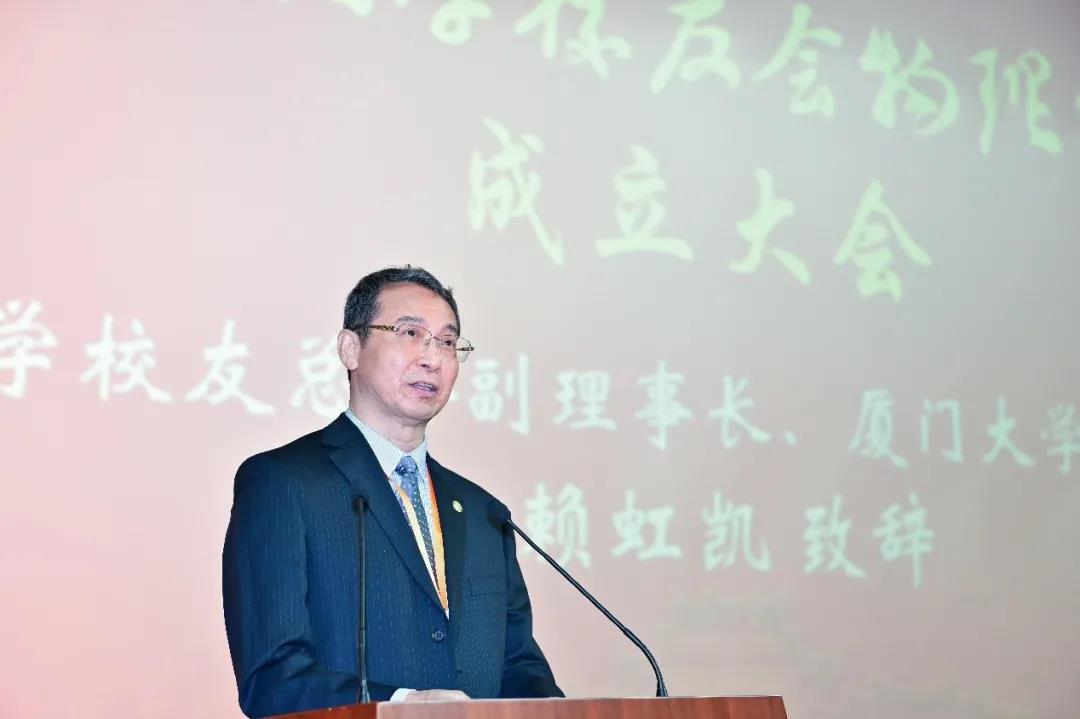 赖虹凯代表厦门大学及校友总会致辞,向物理分会的成立表示祝贺,向长期以来关心、支持学校发展以及为在各行各业为母校赢得荣誉、作贡献的校友致以由衷的感谢。他表示,如今厦大“在世界一流大学里有自己的一席之地”的目标正在一步步实现,新的一百年已经拉开序幕。物理分会作为厦大校友总会的隶属分会,让厦大物理人有了一个新的家。他提出了四点希望:首届理事会积极发挥职责;物理分会发挥桥梁纽带作用;物理校友自强不息、砥砺奋进;广大校友爱校荣校、携手共进。