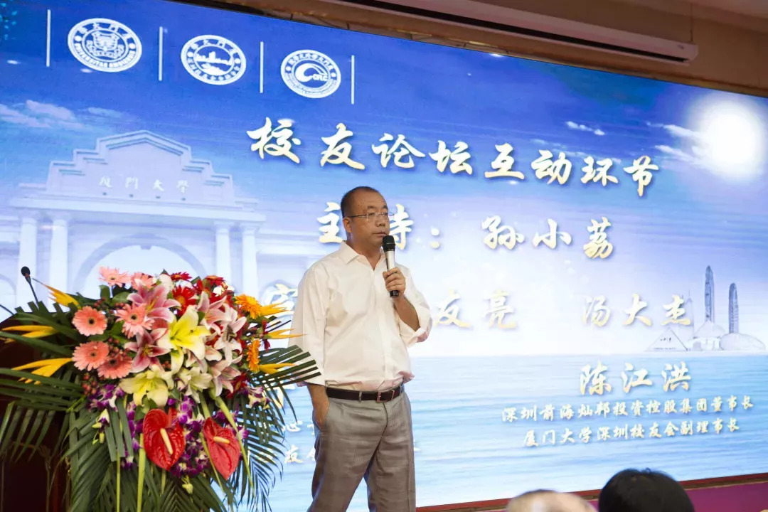 此外,还有亮点颇多的互动论坛环节。深圳校友会副理事长、香港赤子之心董事长赵丹阳校友结合自己的人生经历鼓励年轻的校友们多去世界旅行,不要固守一方,要放眼全球,在世界各地创办企业。深圳校友会副理事长、深圳前海灿邦投资控股集团董事长陈江洪校友则是围绕“年轻校友如何在离深圳近一点的地方安家”提出中肯的建议,他表示目前深圳实施东进战略,向东发展是大势所趋。在深买房压力大的校友可考虑惠州、汕尾、河源等地,这些都是投资和安居的理性选择方向。汤大杰校友发表了他对创业的看法:目前的经济形势不好,在这个时间点出来创业需要更谨慎,建议年轻的校友们在大的平台上踏实工作,积累五到八年再考虑创业,这样成功率会更高。
