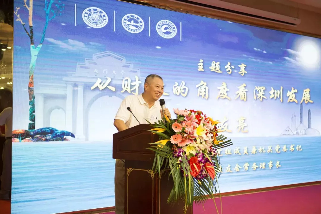此次活动,还有干货满满的校友论坛,在各自领域已是佼佼者的校友们给大家带来一场毫无保留的精彩分享。深圳校友会常务理事长、深圳市前财政委员会党组成员兼机关党委书记刘友亮《从财政的角度看深圳发展》。他从深圳行政辖区面积、人口、2017年GDP、财政收入、产业结构等方面客观全面的解读了财政在资源配置、经济发展上所起的作用。他表示,财政是检验深圳改革开放成效的窗口,整个深圳的产业结构抗风险能力强,企业科技创新和研发具备丰厚的基础必然会在国际市场上占有重要分量。