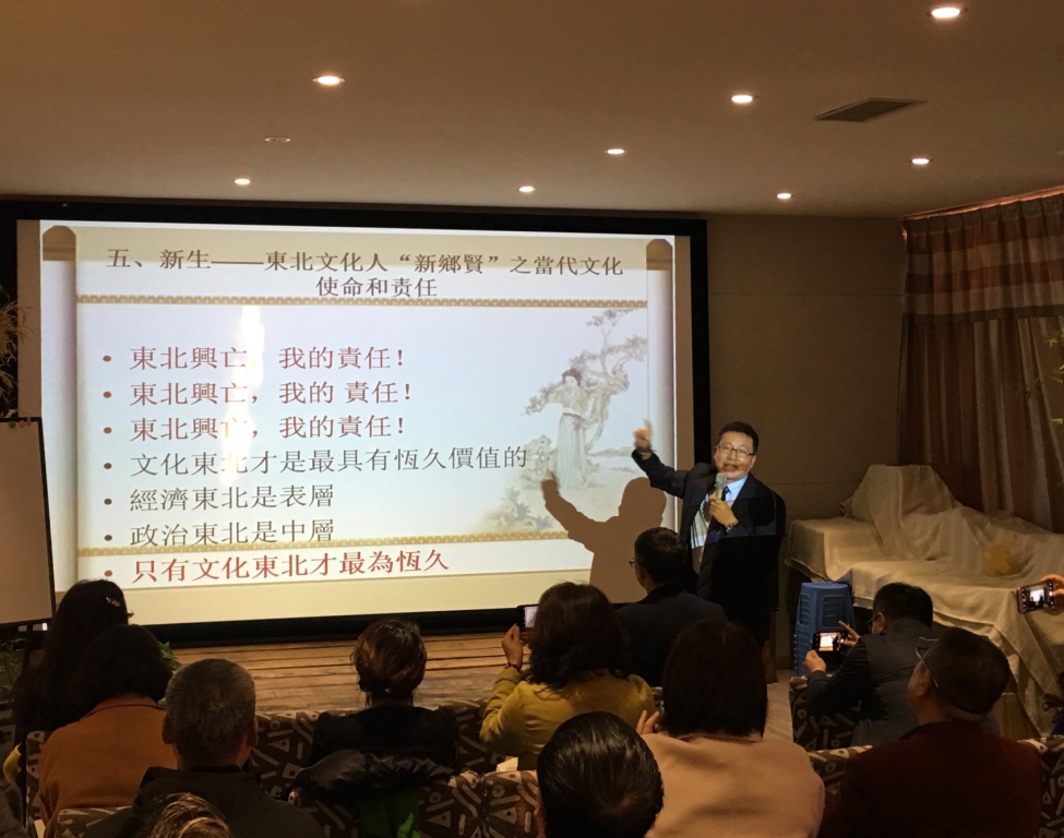 接着,他阐述了近代以来东北亚对华夏祖国之贡献及经济衰落之动因。讲座最后,他论述了东北文化人“新乡贤”的当代文化使命和责任,号召广大“新乡贤”把东北建设成为新的文化、经济高地。