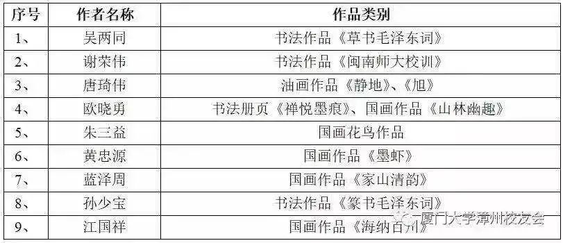 厦大漳州校友会捐赠闽南师大60周年校庆作品名录