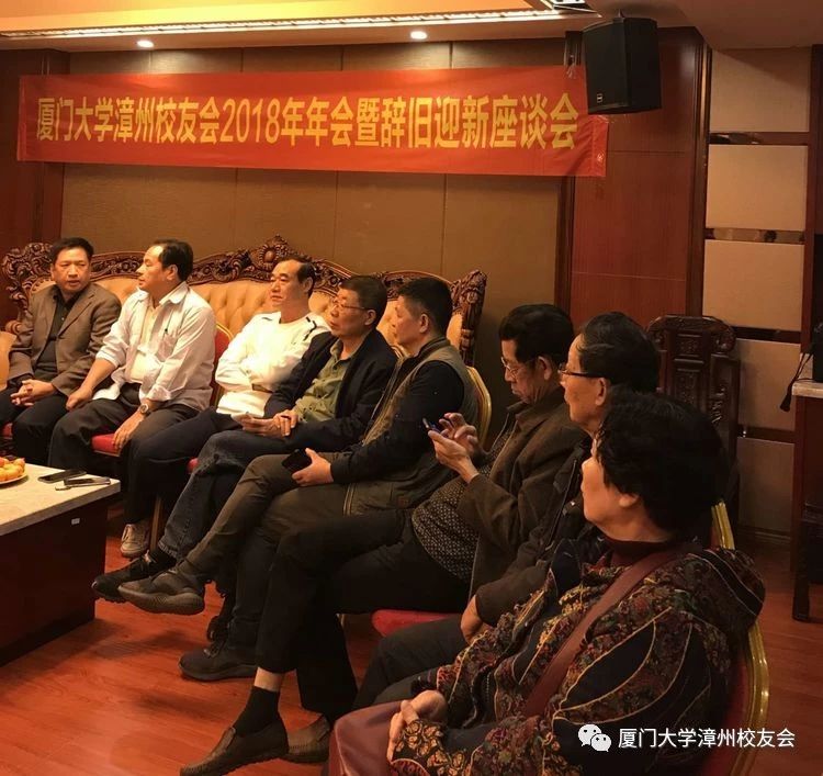 2018年12月28日下午,厦门大学漳州校友会举行“2018年年会暨辞旧迎新座谈会”,会长王光文、执行会长兼秘书长吴两同、常务副会长吴炳龙、副会长郭少泽、黄晓成、办公室主任谢荣辉等出席了会议,老校友、原漳州市委副书记王良才、漳州城市职业学院原党委书记杨明元到会指导。