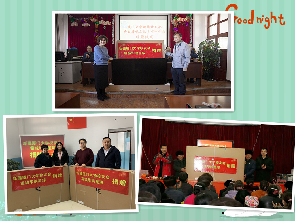 学生、青年、农民,他们等待的是同一件事情。就在这天,由厦门大学新疆校友会捐赠的9台65寸乐视电视机,被分别运送到以上三个地方。