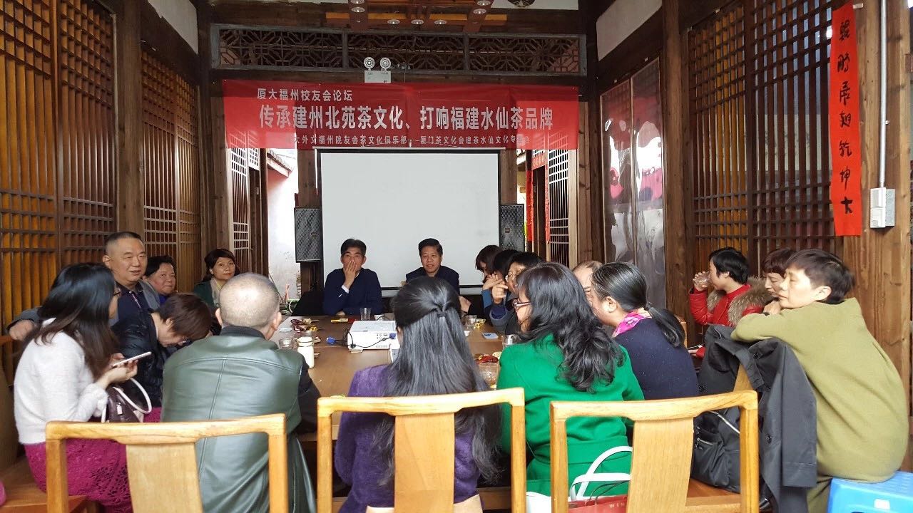 本次活动由福州校友会外文分会茶文化俱乐部与厦门茶文化研讨会建茶水仙专委会共同举办,以“传承建州北苑茶文化,打响福建水仙品牌”为主题,邀请我校75级外文系校友杨廷生担任主讲嘉宾。活动由资深茶友、我校90级外文系校友王文菁主持。厦门茶文化研究会创会会长、音乐达人董立平女士参加论坛。