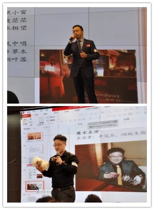 2012级音乐表演系校友万程为大家表演了独唱《思乡曲》,2008级生命科学学院校友辛冠杰为大家带来精彩魔术。