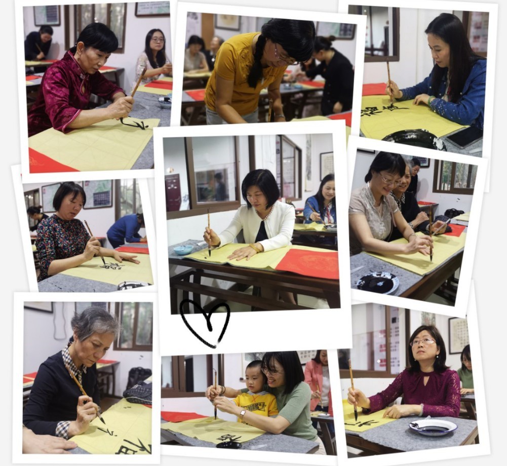 享用茶点后,书法讲座和体验就开始了,新华学校的苏义春老师结合书法发展史介绍书法的五体演变,以及初学者要如何选帖选笔等。随后,老师展示了福寿康宁四个大字的写法,校友们跃跃欲试,纷纷完成了自己的“福”字书写,带福回家。