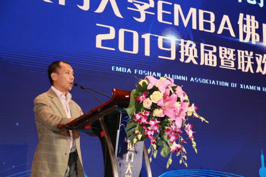 EMBA佛山校友会会长刘健在致辞中表示,EMBA佛山校友会是EMBA在全国成立的第一个区域性校友会,校友会人数不多,但人才济济,许多皆为行业翘楚。他表示,在未来,佛山校友会将更加团结,加强与母校的沟通联系,广泛联系全国校友,通过活动整合不同校友会的资源,更好地为校友们服务。也希望有越来越多的优秀企业家们能走进厦门大学EMBA的课堂,加入到校友会中。