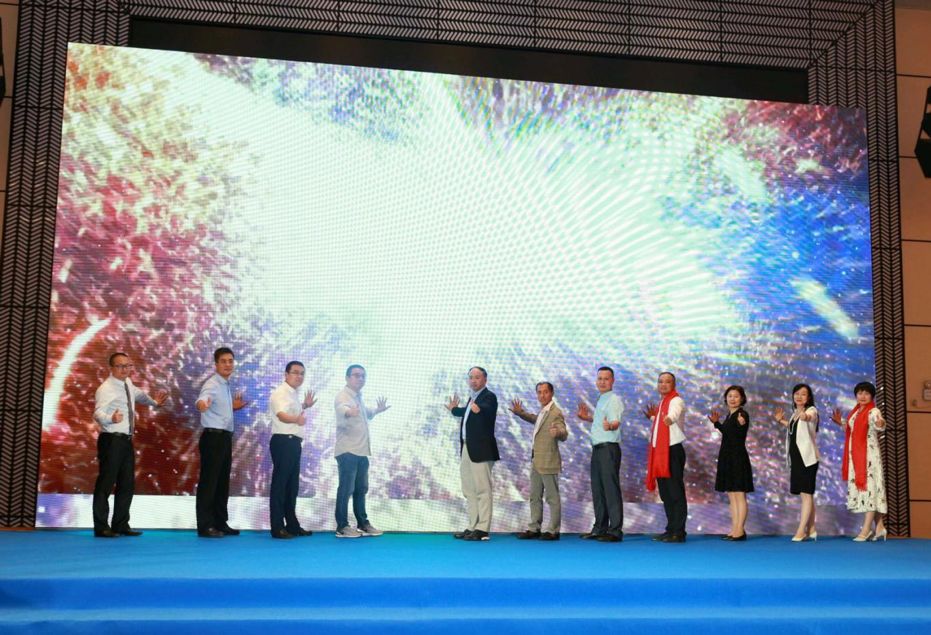 紧接着,领导与嘉宾们共同在大屏幕上按下手印,晚宴庆典正式拉开序幕。