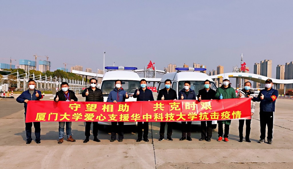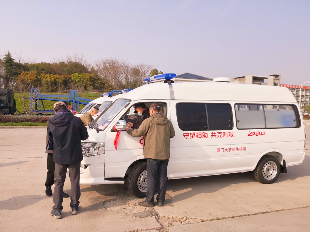 代表厦门大学参加捐赠仪式的另外三位武汉地区的校友分别是湖北省人大常委会委员、省工商联副主席、1982级财金系校友彭斌;湖北省财政厅预算处处长、1986级财金系校友赵红兵;九州通医药集团股份有限公司总经理、武汉校友会副会长、EMBA2011级校友龚翼华。前不久,厦门大学武汉校友会为配合母校援助湖北籍学生抗疫,专门成立了预备应急小组,碰巧的是,今天到场的四位校友,都是应急小组成员。救护车卸下来后,龚翼华校友专业精深,马上脱口而出:“负压救护车,具备隔离功能”。