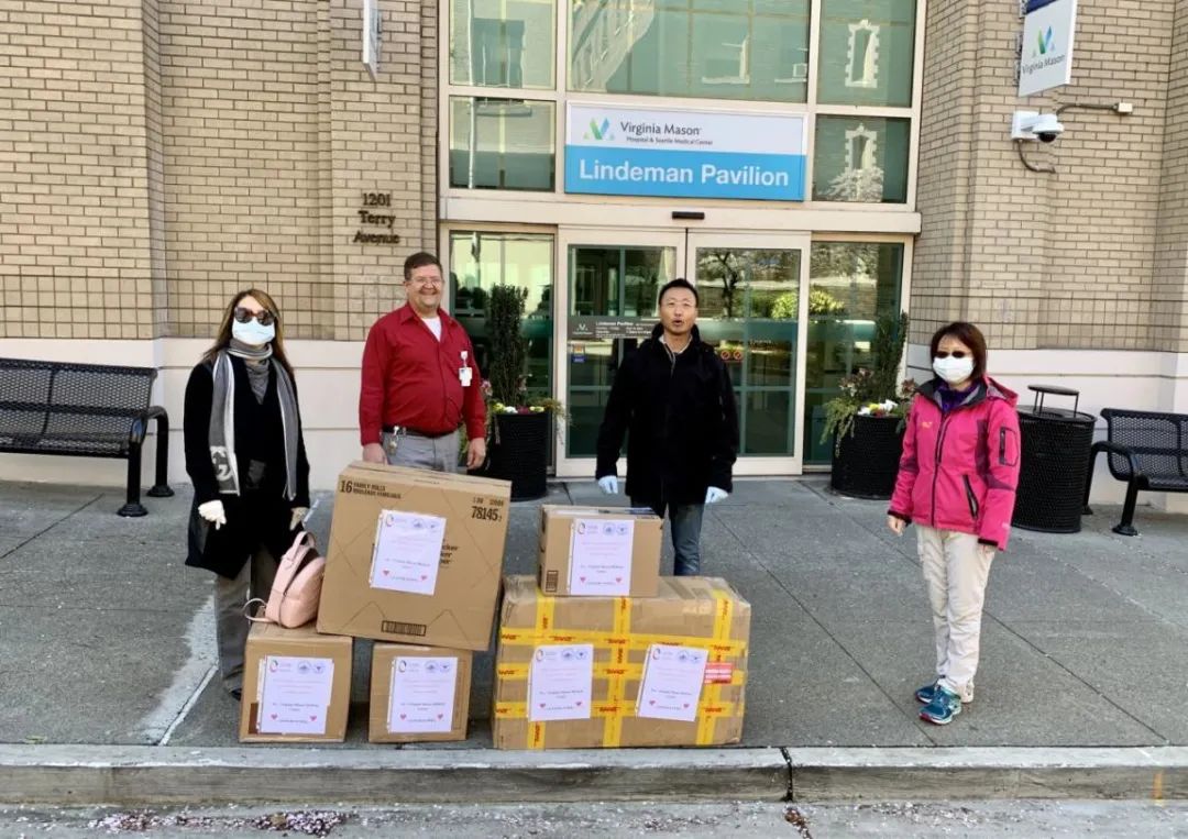 西雅图校友会和华州中国总商会向 Virginia Mason医院捐赠防疫物资