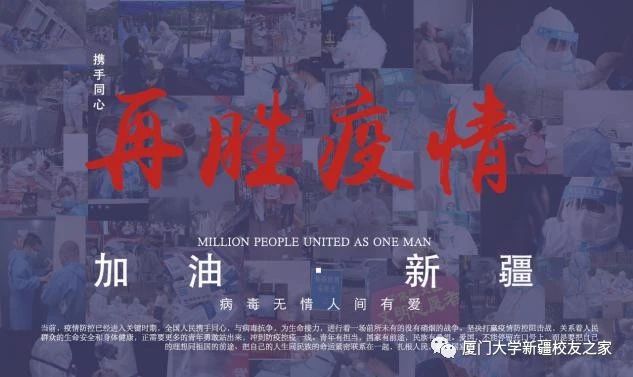 2020年8月8日,厦门大学新疆校友会与“同新协力”暑期实践队通过“厦门大学新疆校友之家”公众号,向广大校友发起了征集助力新疆抗疫正能量、加油视频素材的倡议活动。