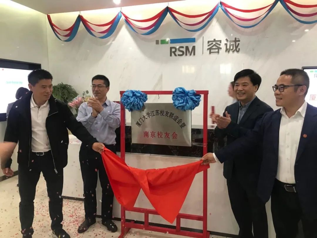 11月7日下午15点48分,在江心洲管委会旁边的江岛智立方的校友的容诚会计师事务所内,厦门大学江苏校友联谊会暨南京校友会举行揭牌仪式。随着厦门大学江苏暨南京校友会创始会长郑元明校友、秘书长潘正海校友、无锡校友会会长潘汉军校友和苏州校友会会长黄益民校友将红布缓缓揭下,校友之家正式落成在了江心洲上。与此同时,校友之家赠予容诚会计师事务所的油画“RSM”也由创始会长郑元明先生和创作者应晶晶女士举行了揭牌形式。