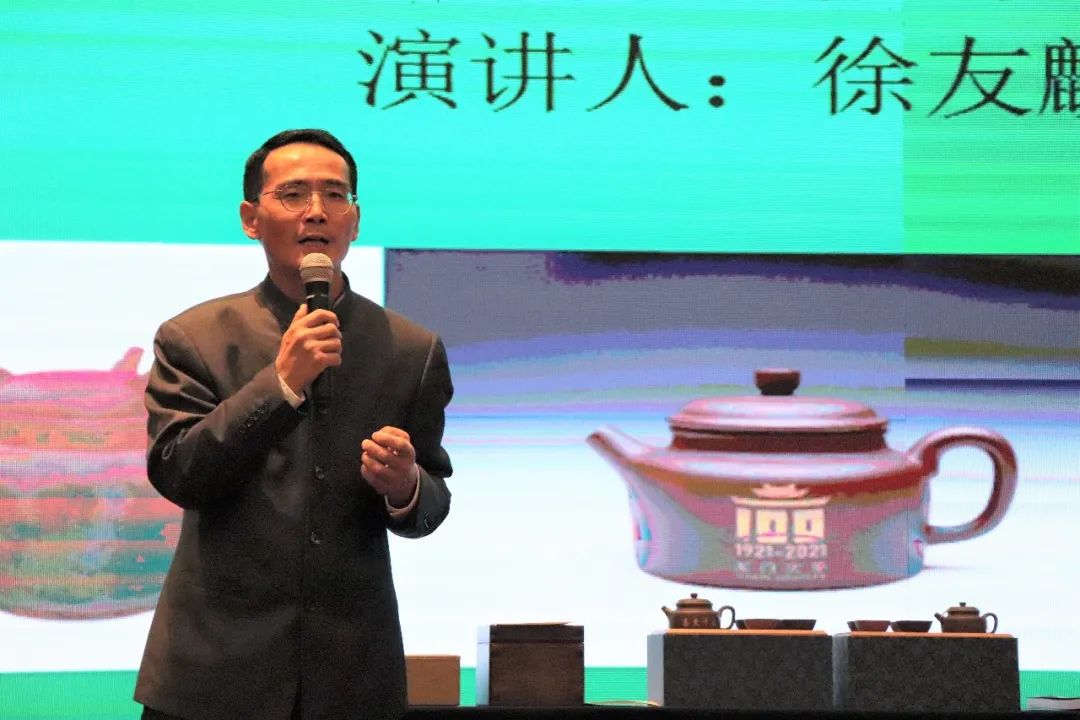 江苏的厦大人也准备了一份极具特色的礼物献给母校——紫砂壶——厦大百年思宇壶。活动上请来了思宇壶的设计制作者——徐友麟先生,来自1985级考古系的校友,宜兴紫砂百工坊品牌创始人。这款壶是厦门大学百年华诞(汉风将军印),从厦大校训“天行健”和古代《汉方壶》得到灵感,创作设计。