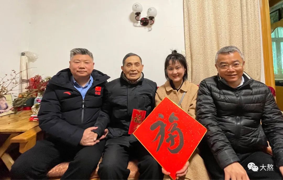 由于行程紧,我们将李斌理事长书写的“福”字春牌帮学长挂好,并代表校友会赠送了慰问金后,就依依不舍地去往第二站。