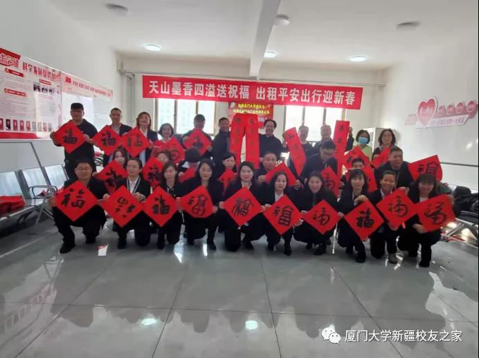 1月8日,新疆厦门大学校友会与新疆九方伟业广告传媒有限公司党支部共同举办“天山墨香四溢送祝福,出租平安出行迎新春”共建活动。为昌吉公交出租车司机和各族职工送上了300多福春联和福字,以此表达厦大人对各位司机师傅们的真诚敬意和祝福。