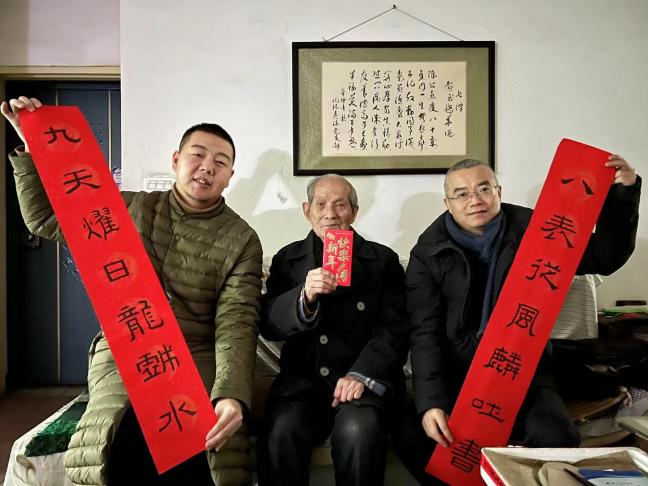 林风云等人为90高龄的陈思敏学长送去的“福”字为他家里添了许亮色。陈思敏学长和李兴濂学长是同班同学,多年未曾见面,校友会也计划明年给他们安排一个“春天的约会”。