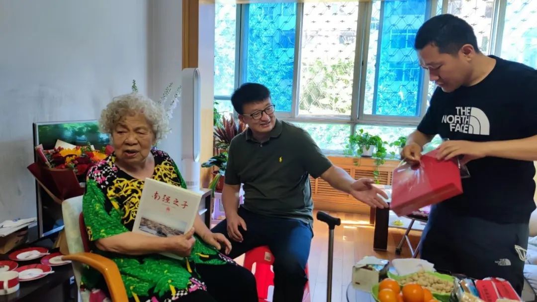 九十多年的风雨人生,锻造了林学长豁达开朗的胸怀,学长看问题、对待事物的态度淡然而明快,校友们的到来让她分外高兴。多年来,林学长一直心系厦大,在厦大校友总会寄来的期刊中看到了辽宁校友会的信息,就立刻通过校友总会与继国秘书长取得联系,然后才有了这次久违的美好相逢。校友们代表辽宁校友会向林学长赠送了《南强之子》会刊、百年校庆纪念茶砖、鲜花和“茉莉花开北国,一生心系南强”的祝福语。林学长情到深处亲自抚琴,与到访校友们共同演唱《大海啊故乡》《革命人永远是年轻》。田继国邀请林学长参加下一次校友会活动,林学长非常痛快地答应,并表达了深深的期待。访谈最后,林学长与校友们一一拥抱并合影留念,期待下次再相聚。