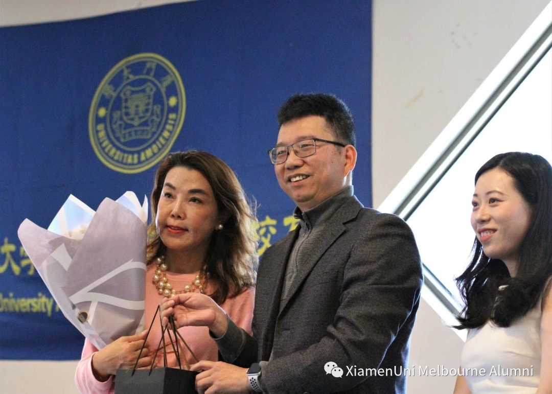 厦门大学墨尔本校友会第五届会长87级李明庭校友代表校友会和新一届理事会为郑晓君校友的辛勤努力和付出致以诚挚的感谢,并送上了美丽的鲜花和精致的校友会活动纪念册,感谢郑晓君校友为厦门大学墨尔本校友会的成长和发展做出的重大贡献。