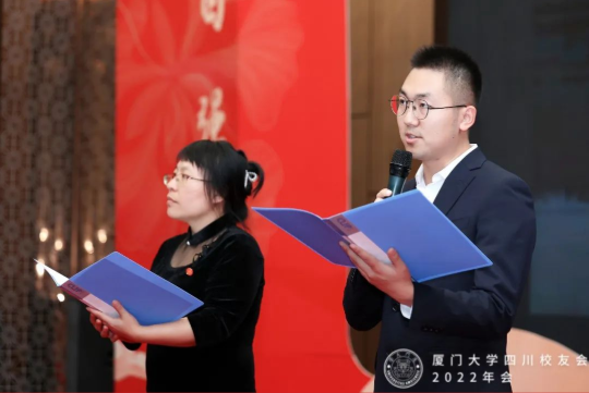 厦门大学贵州校友会会长赵浣淳代表兄弟校友会致辞,他表示,校友工作非常辛苦,特别需要付出和情怀,越刚师兄连续做了12年会长,还要继续连任,他非常感动和敬佩。他将把四川校友会的经验带回去,推动贵州校友会的工作发展,也非常欢迎四川的校友们经常到贵州去走走看看。