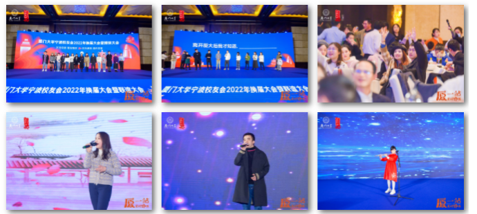晚宴上,2022届新校友介绍、游戏PK互动、节目表演……校友们各展才华。在温馨欢乐的氛围中,宁波校友会2022年换届大会落下帷幕。