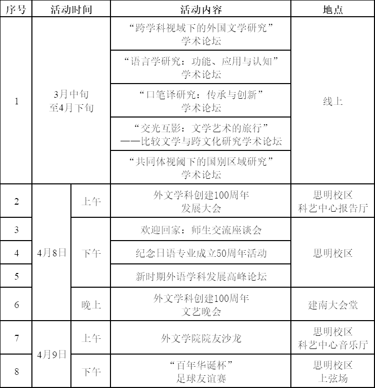 佳期渐近,敬盼君至。我们诚挚邀请广大海内外院友、社会各界宾朋莅临现场参与活动,或通过厦门大学外文学科创建100周年专题网站了解盛况,共襄盛举。